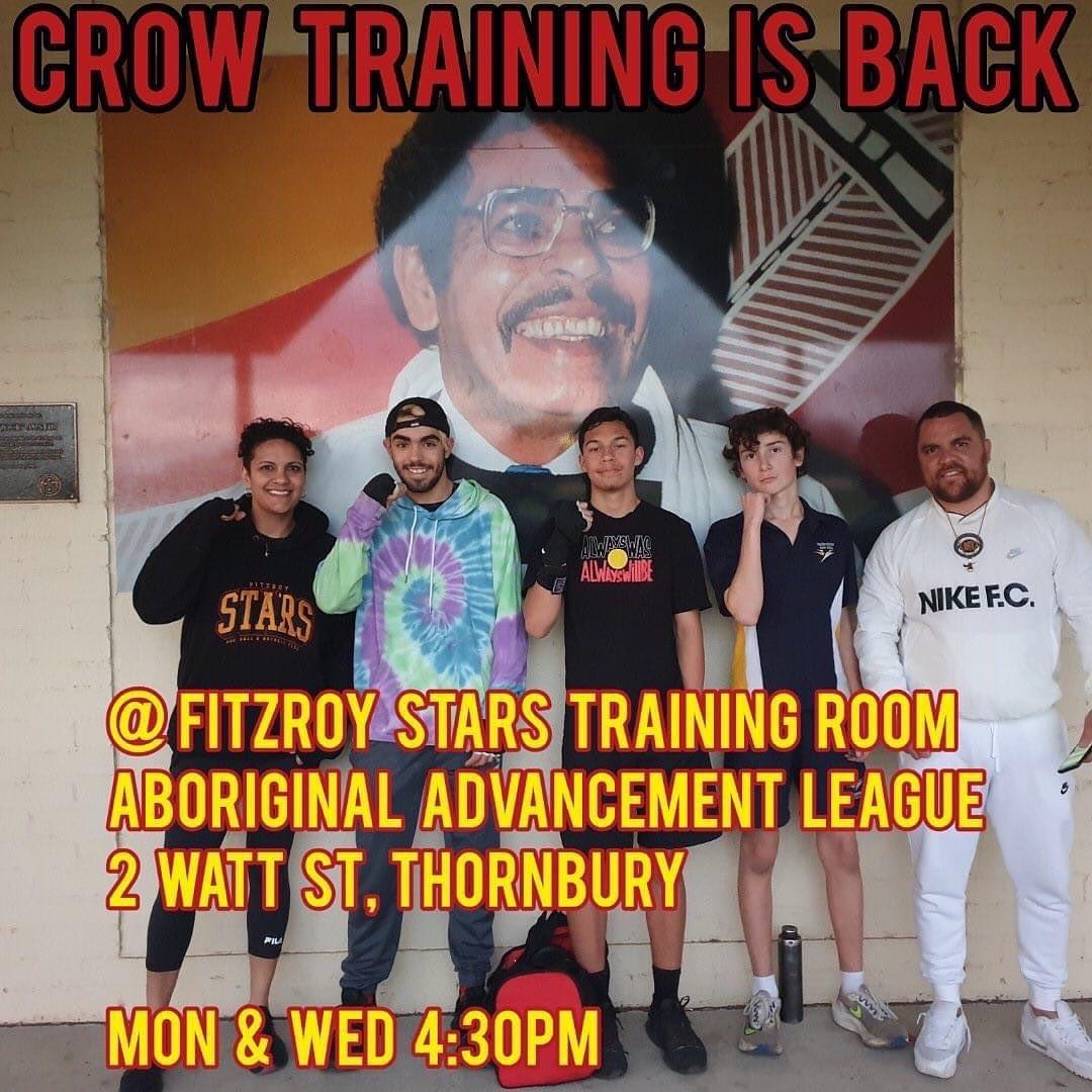 Crow Training is back at the Fitzroy Stars training room, Aboriginal Advancement League. Happening on Mondays and Wednesdays at 4:30pm.