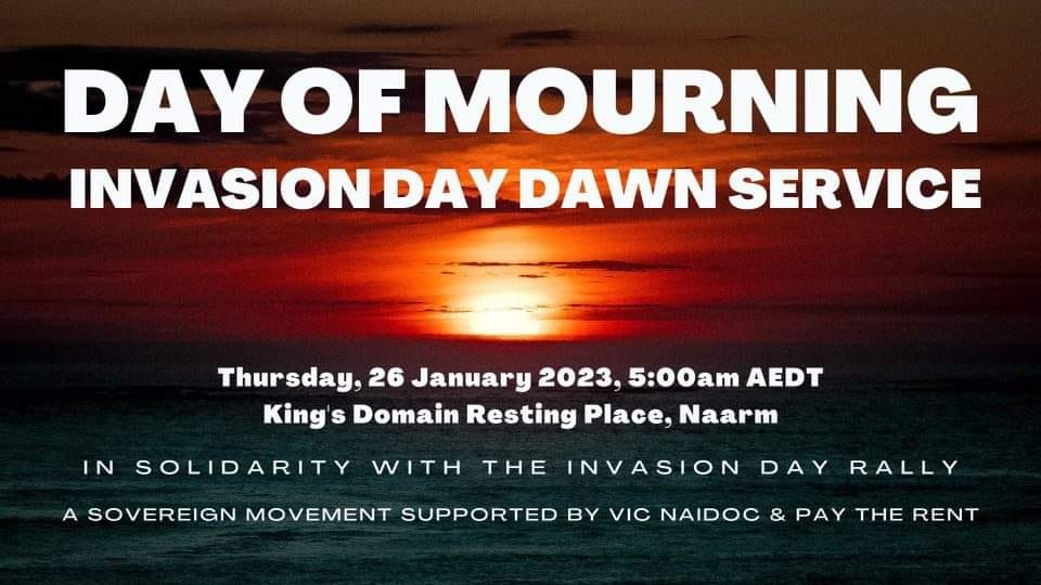 On 26 January 1938 a number of Elders called for a day of mourning, whilst a new nation celebrated nationalism and occupation. We acknowledge our Ancestors, Elders, and Community that make up the 38 plus Nations of the colonial state of Victoria and pay our respects to the many who have paved the way, past and present.
