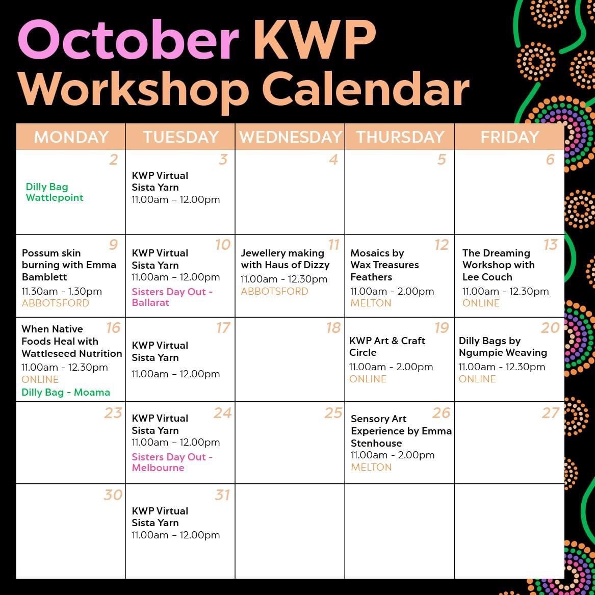 October 2023 KWP calendar is now ready! Get in quick to sign up any clients or community members, as spots will fill in quickly. Contact KWP to register, call 9244 3333 (and press 3) or email kwp@djirra.org.au