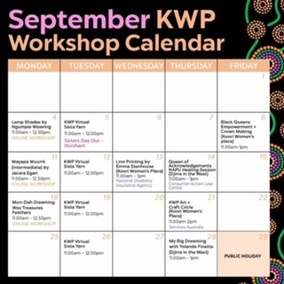 September KWP calendar is now ready! Get in quick to sign up any clients or community members, as spots will fill in quickly. Contact KWP to register, call 9244 3333 (and press 3) or email kwp@djirra.org.au