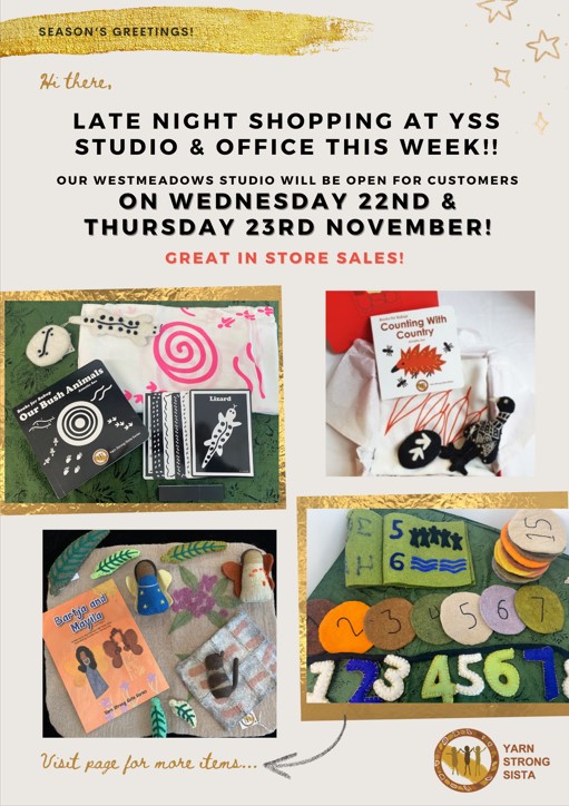 Yarn Strong Sista Store in Westmeadows will be open for LATE NIGHT SHOPPING WEDNESDAY NIGHT & THURSDAY NIGHT!!