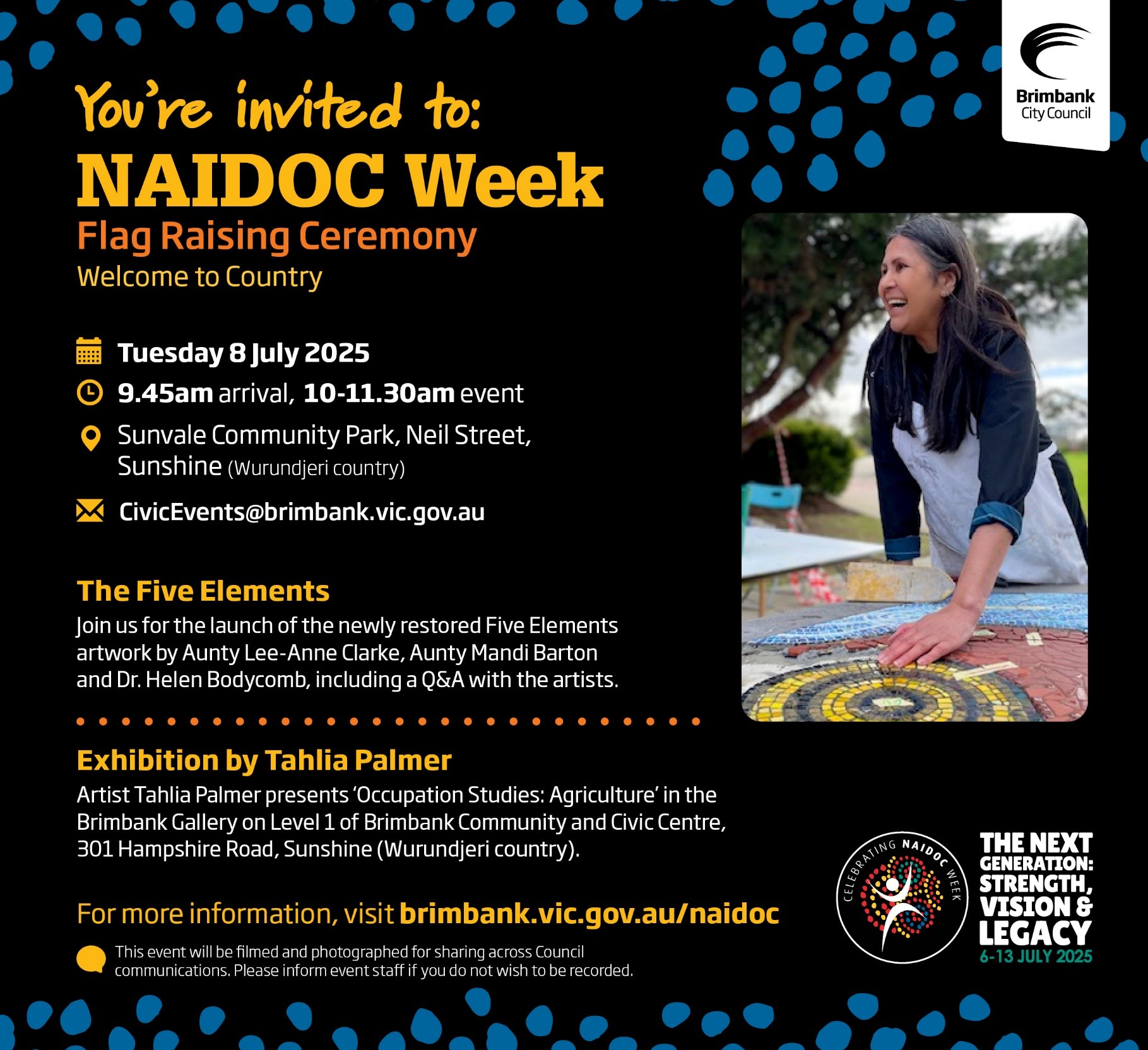 Come down to Sunvale Community Park for the NAIDOCĀ Flag Raising Ceremony and the launch of the newly restored Five Elements artwork by Aunty Lee-Anne Clarke, Aunty Mandi Barton and Dr Helen Bodycomb, including a Q&A with the artists.