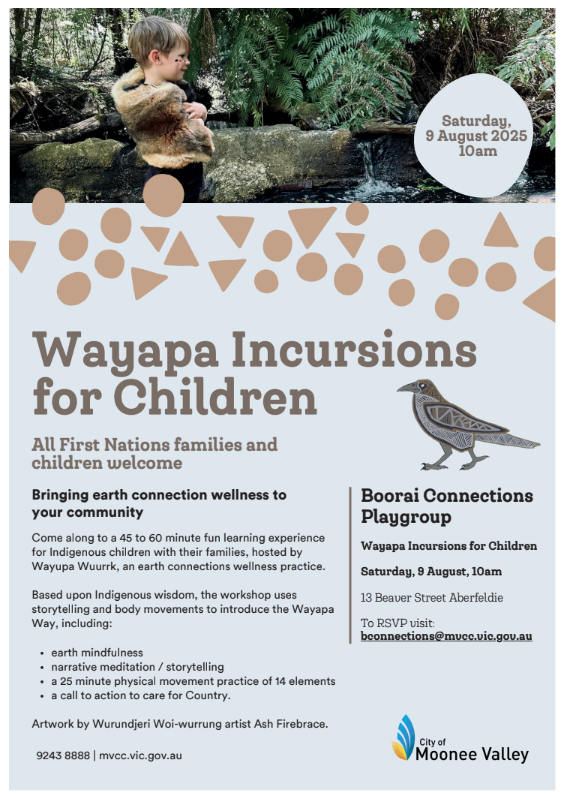 The City of Moonee Valley invite you to come along for a fun learning experience, hosted by Wayupa Wuurrk – an earth connections wellness practice.